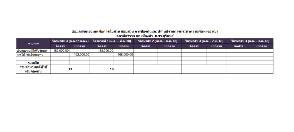 O13 ข้อมูลเงินกองทุนเพื่อการสืบสวน สอบสวน การป้องกันและปราบปรามการกระทําความผิดทางอาญา